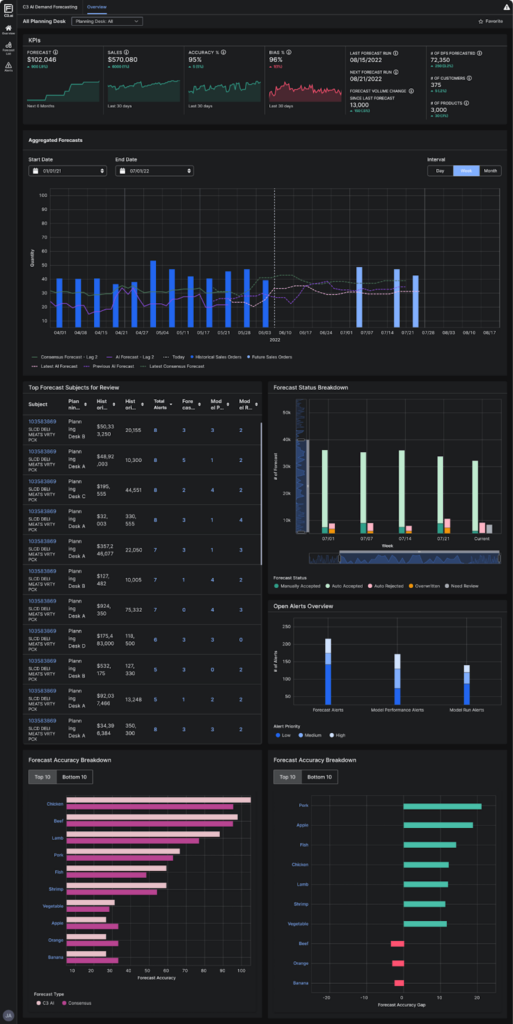 C3 AI offers a packaged AI application for demand forecasting, with enterprise-level integration and governance. While the application layer can help central teams roll out reliable forecasts across business units, many organizations face longer implementation cycles and greater stakeholder management.